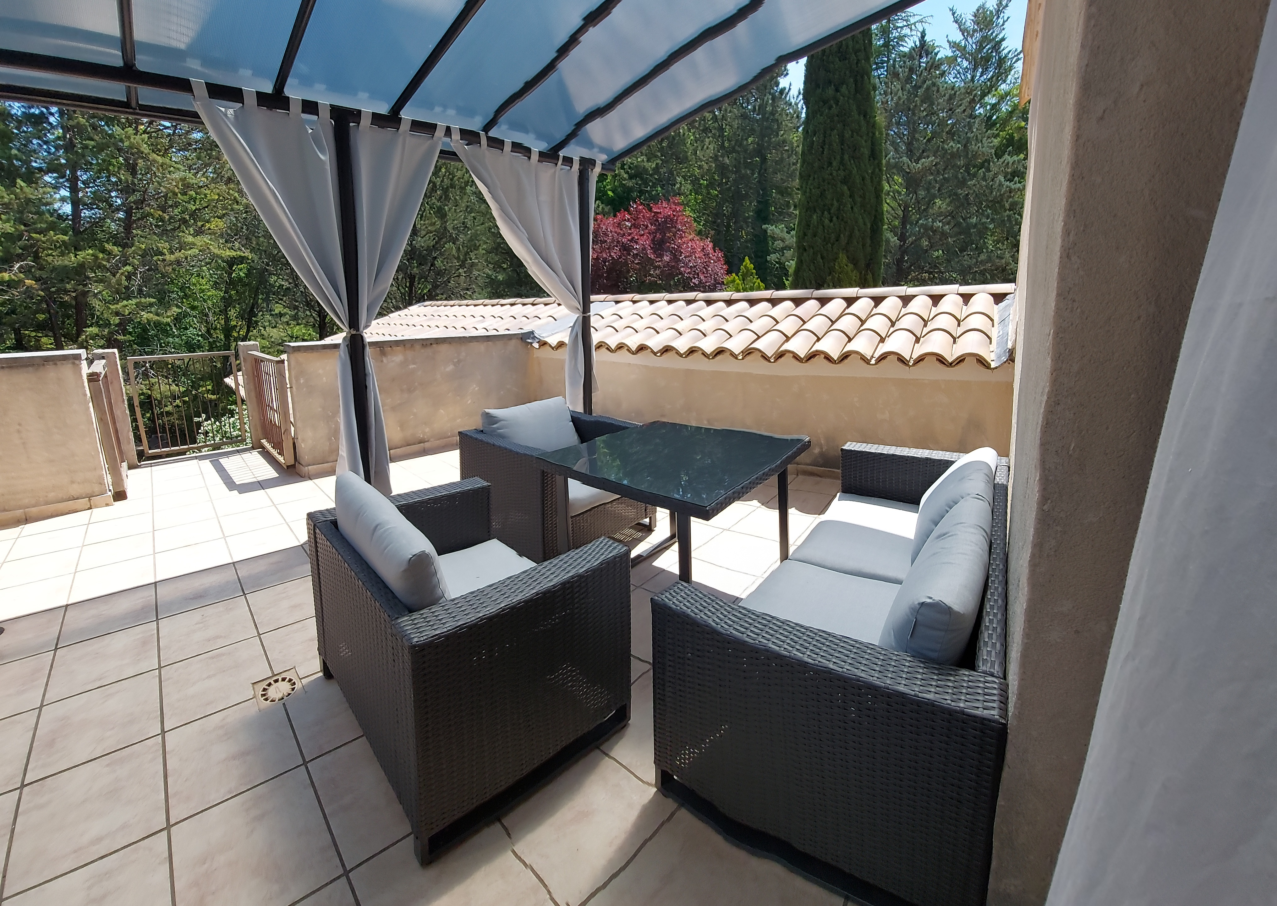 Gîte 2 is een riant vakantieappartement dat is gesitueerd op de eerste verdieping en heeft de ingang via een trap en een riant en zonnig eigen afsluitbaar terras van ± 20 m2.